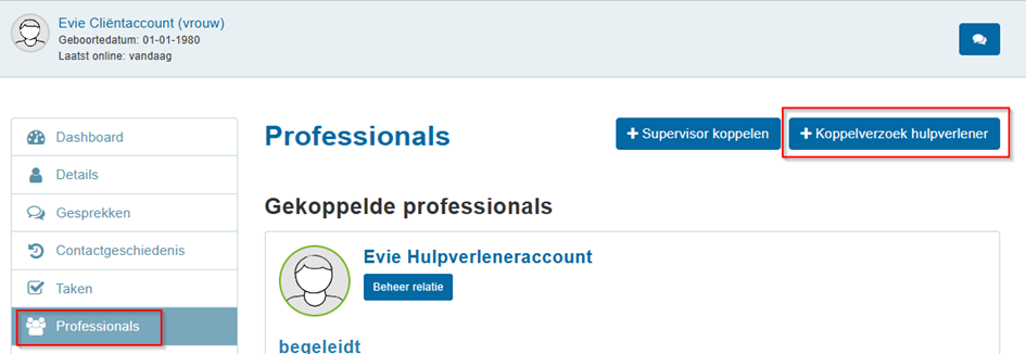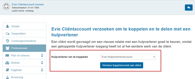 - Stap 1: Koppel de hulpverlener die jouw patiënt overneemt aan het cliëntaccount