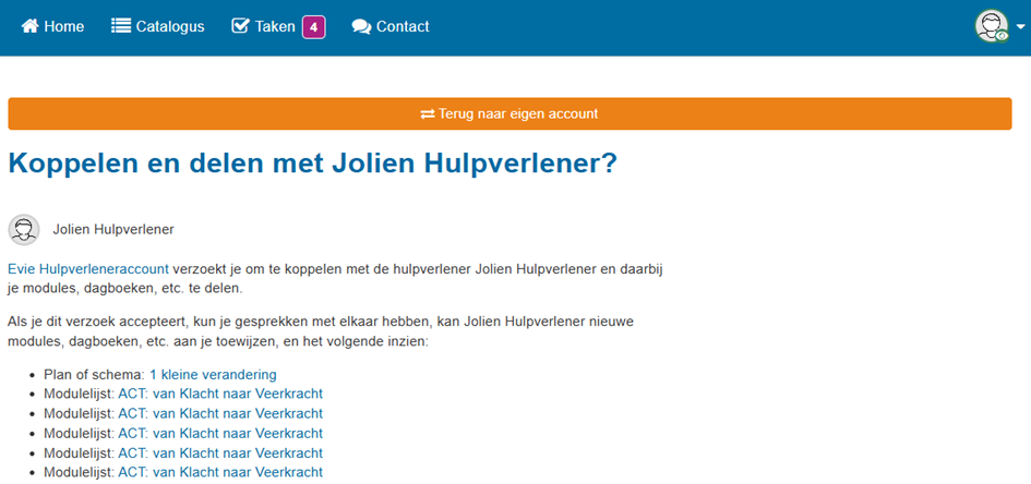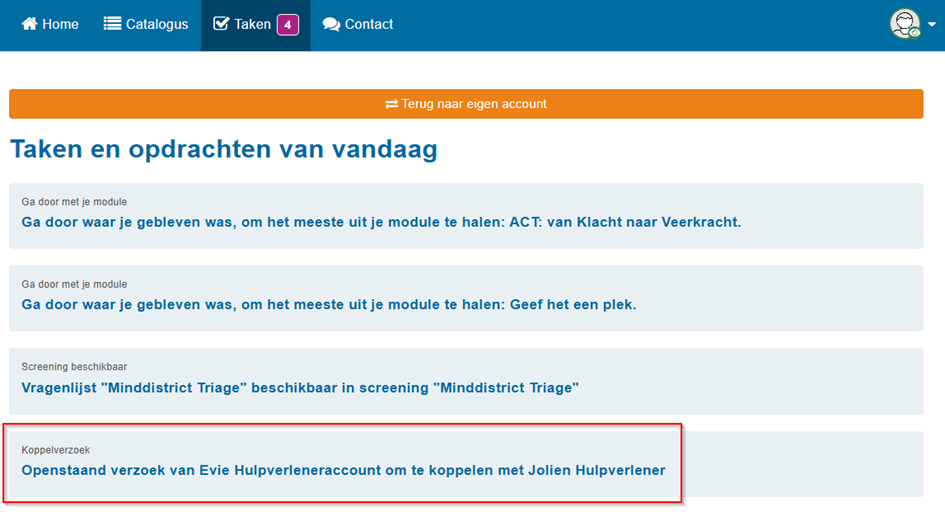 De patiënt krijgt een mail en kan het koppelverzoek bij taken accepteren:
