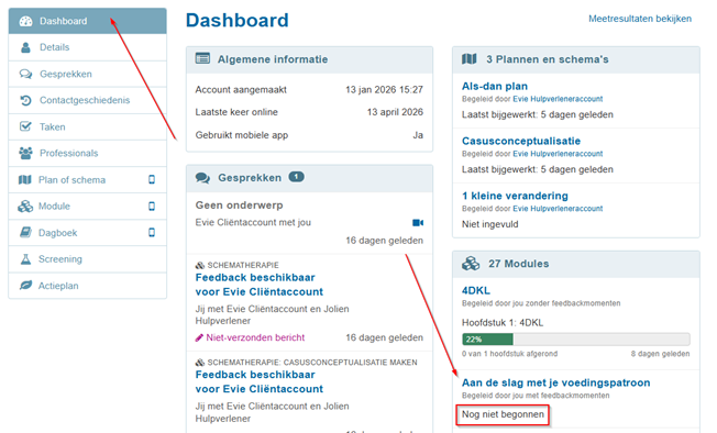 Als een module eenmaal is geopend, is het helaas niet meer mogelijk om deze in het geheel te verwijderen. De cliënt kan dan via het eigen account de module archiveren.