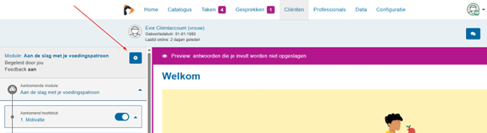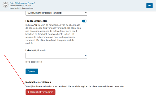 Let op: verwijderen kan dus alleen als de cliënt “nog niet begonnen” is aan de module.