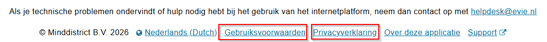 In de footer van het platform vind je de privacyverklaring en de gebruikersvoorwaarden: